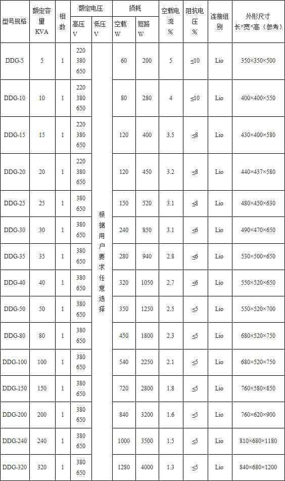 DDG型低电压变压器系列适用于额定频率为50赫兹的开关、电流互感器或其他电器设备的连续负载试验及作升流之用。