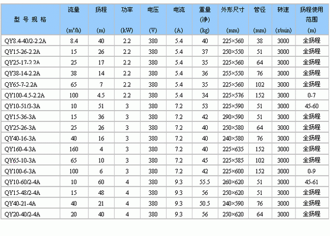 QY型充油式潜水电泵